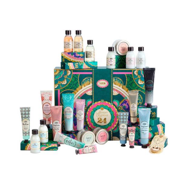 Exfoliante corporal té blanco 60 gr + Exfoliante corporal té de rosas 60 gr + Exfoliante corporal rosa verde 60 gr + Champú reparador Jazmín delicado 50 ml + Champú reparador Rosa verde 50 ml + Acondicionador reparador Jazmín delicado 50 ml + Champú refrescante Menta 30 ml + Loción corporal rosa verde 50 ml + Loción corporal jazmín 50 ml + Exfoliante para el cuero cabelludo geranio relajante 50 ml + Exfoliante facial 2 en 1 menta 50 ml + Crema de manos 10 ml té de rosas + Aceite de ducha rosa verde 50 ml + Aceite de ducha pachulí lavanda vainilla 50 ml + Aceite de ducha té de rosas 50 ml + Cuchara metálica para exfoliante corporal Sabon Gold + Crema de manos jazmín 30 ml + Crema de manos té blanco 30 ml + Mascarilla y exfoliante 3 en 1 del Mar Muerto 50 ml + Leche corporal sedosa té blanco 50 ml + Leche corporal sedosa té rosa 50 ml + Crema de manos mantecosas PLV 30 ml + Mascarilla facial floral Gelee 30 ml + Crema de manos rosa verde 10 mlCALENDARIO DE ADVIENTO