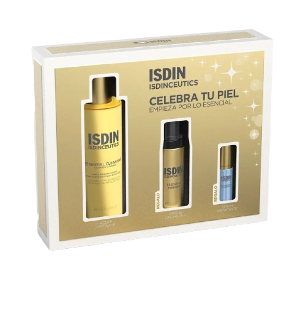 ISDINCEUTICS Essential Cleansing Set este un ritual complet de curatare si hidratare conceput pentru a reda pielii luminozitatea, echilibrul si confortul de zi cu zi. Cu o formula inspirata din cercetarea dermatologica avansata ISDIN, acest set combina curatarea profunda, dar delicata, cu o hidratare intensa, fiind ideal pentru toate tipurile de piele, inclusiv pentru cea sensibila sau deshidratata. Ulei facial de curatare cu textura matasoasa, care indeparteaza eficient machiajul, impuritatile, sebumul si filtrele solare, respectand bariera hidrolipidica naturala a pielii. Formula sa contine uleiuri de origine naturala (ulei de masline, floarea-soarelui si chimen negru),bogate in acizi grasi si antioxidanti, ce ajuta la mentinerea hidratarii si la protejarea pielii impotriva radicalilor liberi. La contactul cu apa, uleiul se transforma intr-o emulsie lejera care se clateste usor, lasand tenul curat, catifelat si revitalizat, fara senzatie de uscaciune sau film gras. Spuma delicata de curatare cu aminoacizi si extracte naturale, conceputa pentru a elimina impuritatile reziduale dupa demachiere, oferind o senzatie de prospetime si curatenie completa. Formula echilibrata ajuta la reglarea excesului de sebum, mentinand totodata hidratarea optima a pielii. Textura sa aerata ofera o experienta placuta la aplicare, fiind potrivita pentru utilizare zilnica, dimineata si seara. Ser facial intensiv, cu acid hialuronic pur si peptide biomimetice, care ofera o hidratare profunda si de durata, contribuind la redobandirea elasticitatii si fermitatii pielii. Formula sa concentrata netezeste liniile fine, confera un efect de umplere vizibil si reda tenului un aspect luminos, uniform si plin de vitalitate. Este perfect pentru completarea rutinei zilnice de ingrijire dupa curatare. Impreuna, aceste trei produse ofera o rutina completa de ingrijire: curatare in doua etape si hidratare intensiva, care sustine sanatatea barierei cutanate si imbunatateste textura pielii, oferindu-i un aspect neted, proaspat si radios.