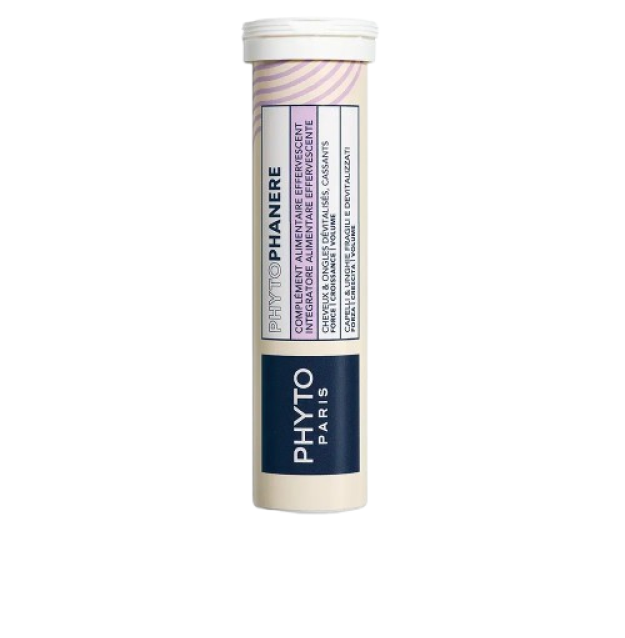 PHYTO Phytophanère Effervescent Food Supplement este un supliment alimentar sub forma de tablete efervescente, creat pentru a sustine sanatatea parului, unghiilor si pielii din interior. Formula combina vitamine, minerale si nutrienti esentiali care contribuie la fortificarea firului de par, intarirea unghiilor si imbunatatirea aspectului pielii, intr‑un mod comod si placut de administrat. Tabletele se dizolva in apa, oferind o bautura placuta, usor de integrat in rutina zilnica. Produsul este potrivit pentru perioadele de stres, schimbari de sezon sau atunci cand parul si unghiile au nevoie de un boost nutritiv.